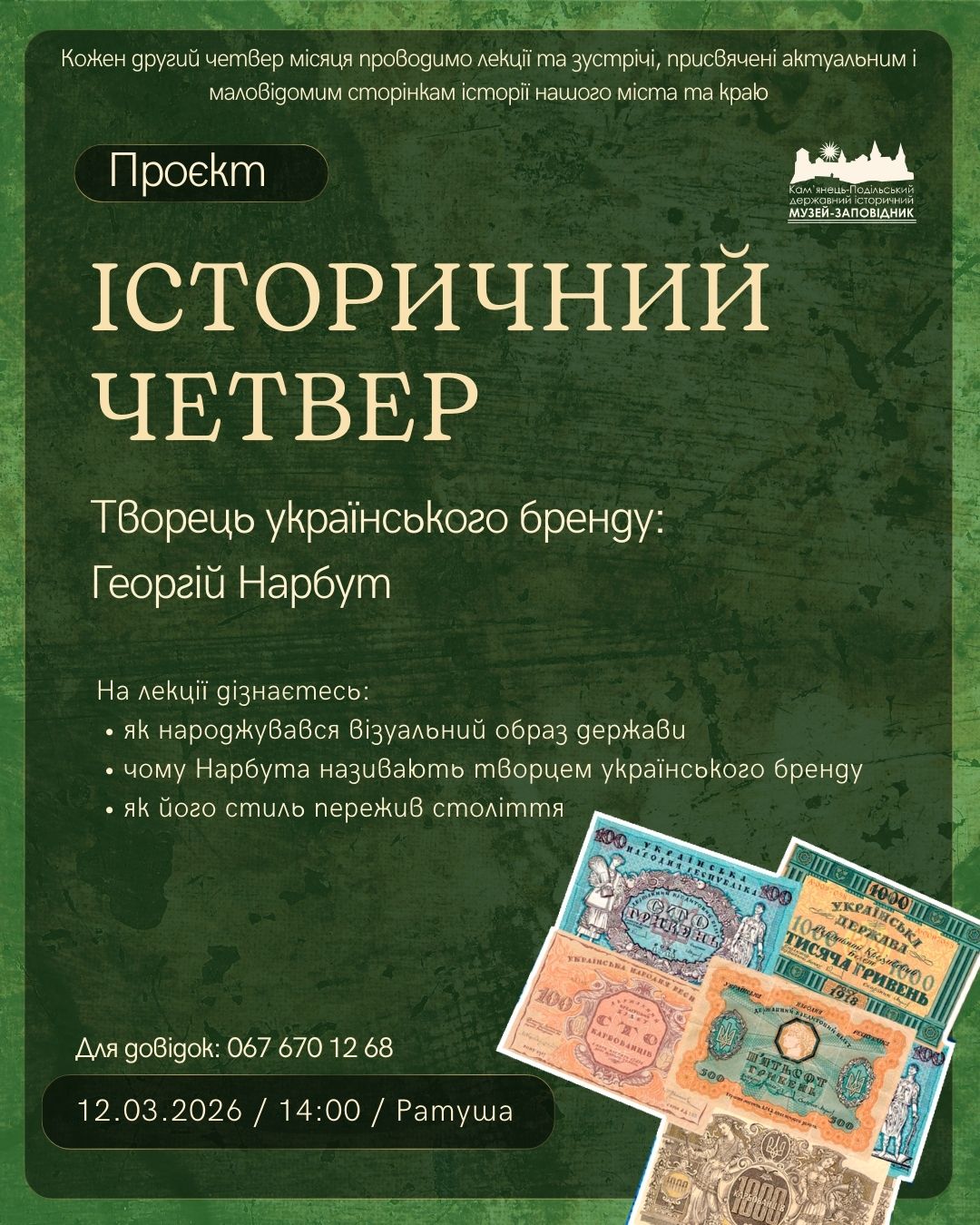 «Історичний четвер» — це нагода не лише почути факти, а й відчути, як історія працює тут і зараз. Запрошуємо всіх, хто цікавиться минулим Кам’янця, любить змістовні розмови та хоче відкривати знайоме місто наново.